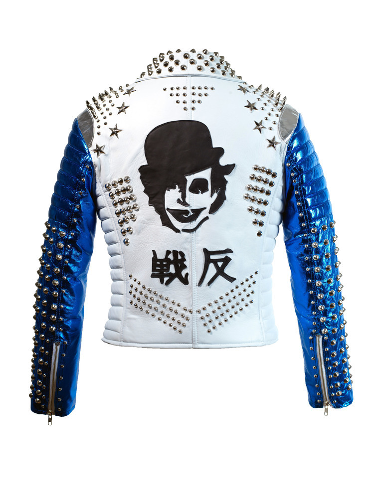 Victor Luna Dead Star Tech White Blue Studded Leather Jacket