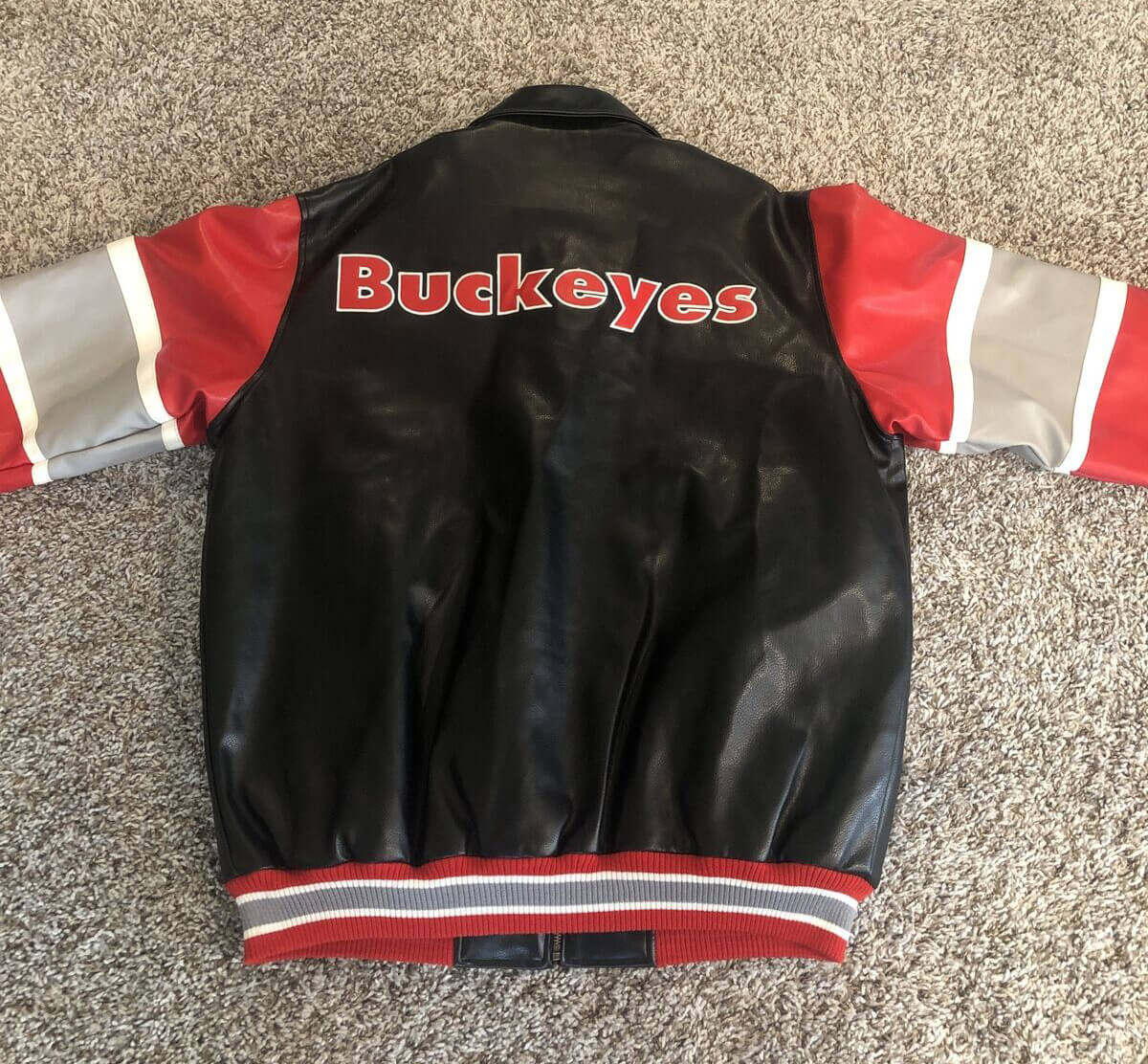 This “Vintage Ohio State Buckeyes Leather Jacket” is made from high-quality leather material. It has an inner lined soft and comfortable Viscose stitched that keeps you warm in the cold and chilly weather. It has a YKK Branded Zipper Style for its closure with a Shirt Style Collar that makes it a retro classic. The Jacket has a Black, Red, Gray, and White color that makes it stand out. The Rib knitted cuffs and Rib knitted hemline also look attractive. The Jacket has Two Side handwarmer pockets. Ohia State Logo on the left chest looks very beautiful. The Jacket is durable to wear due to its fine-quality stitching.