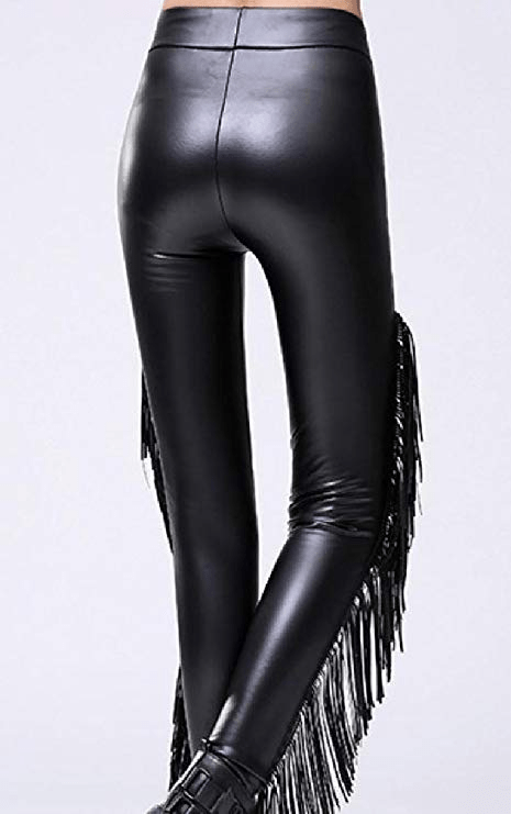 Women Flexible Buttery Soft Leather Fringe Biker Pants