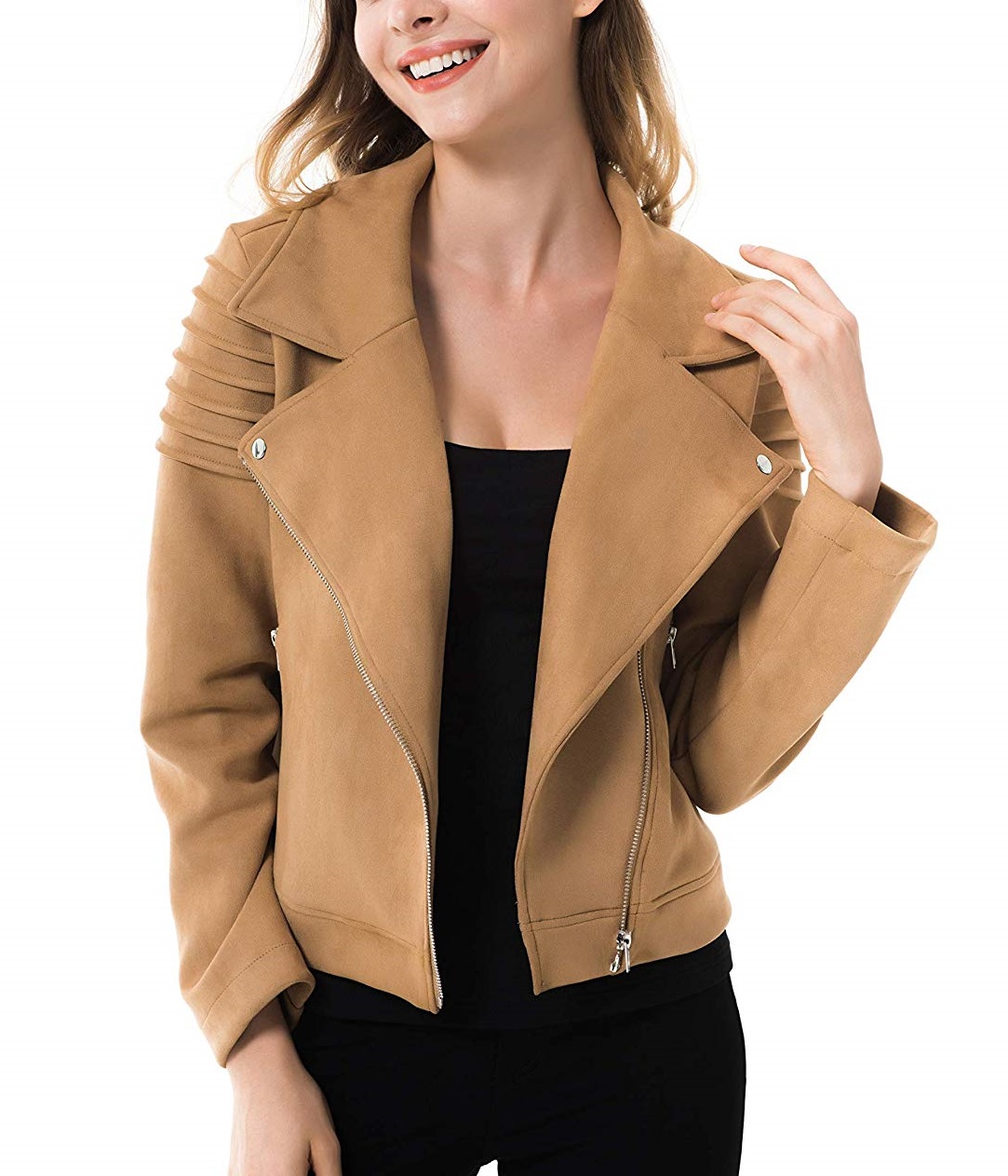 Women Long Sleeve Tan Moto Biker Jacket