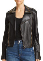Women Steam Punk Studded Biker Leather Jacket is made from high-quality leather. The jacket comes in a stunning jet black color. The Jacket has notch lapel style collar and a branded YKK zipper style closure. The inner of the jacket consists of a soft viscose lining for warmth and comfort. The sleeves of the this are long and fitting with zipper cuffs. The jacket is perfect for parties. The jacket is highly sought after by fans for its omnibus appealing features and fine quality stitching.