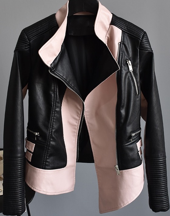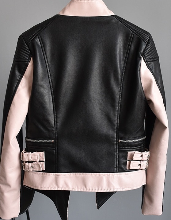 Women’s Asymmetric Punk Bomber Pink Color Leather Jacket