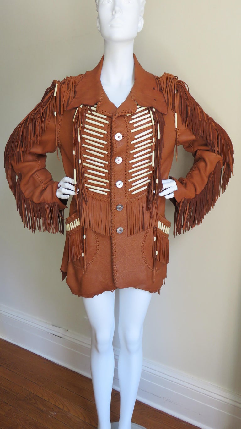Women’s Brown Handmade Leather Fringe Jacket Specification: