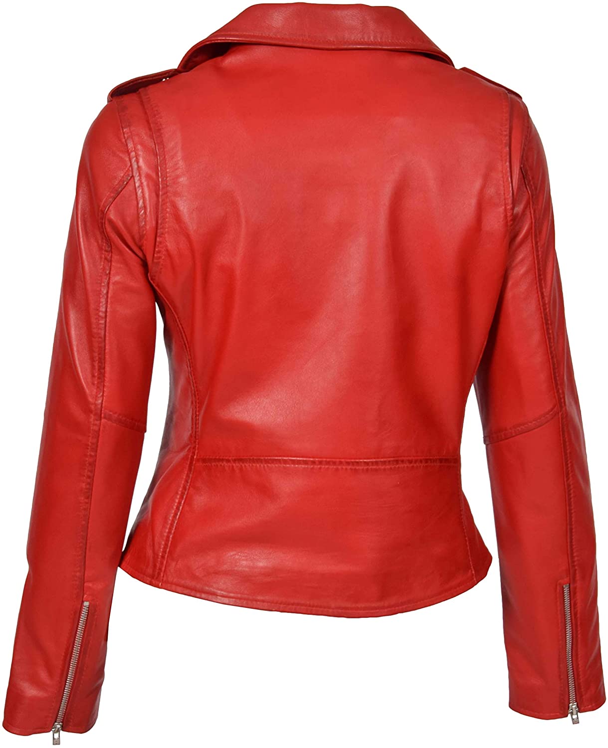 You can revamp the wardrobe with this Women’s Red Cropped Biker Leather Jacket. This is sophisticatedly designed with Leather and to make it more comfortable and warm it has viscose lining stitched inside. It has a zipper closure at the front along with zippered cuffs which give off a trendy look. It has a Notch lapel collar which makes it look retro-classic.
