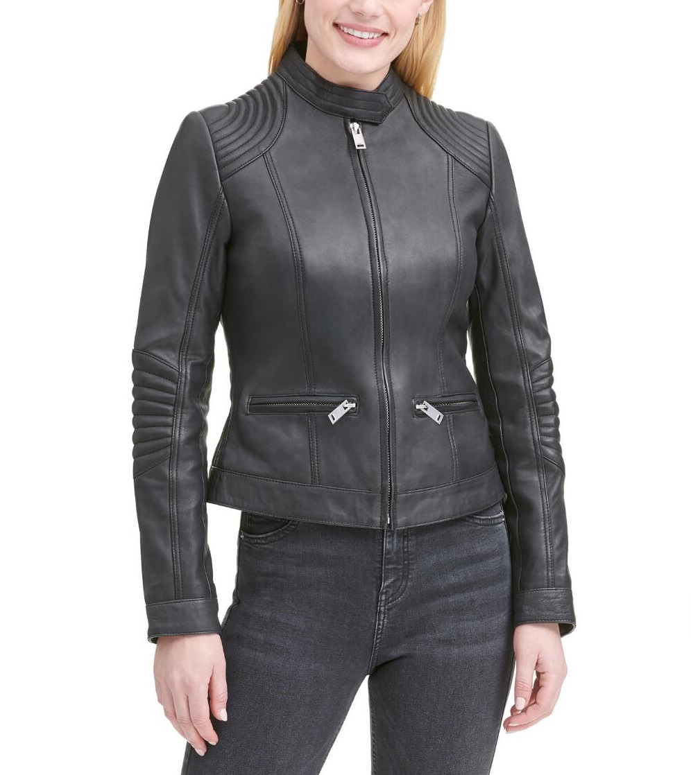 Women’s Stitch Shoulder Leather Jacket With Nipped Waist