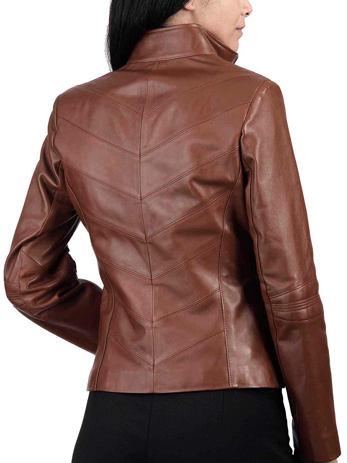 Women’s Stylish Brown Biker Jacket is made from high-quality leather. The jacket comes in a stunning jet black color. The Rocker Suede Jacket has notch lapel style collar and a branded YKK zipper style closure. The inner of the jacket consists of a soft viscose lining for warmth and comfort. The sleeves of the this are long and fitting with zipper cuffs. The jacket is perfect for parties. The jacket is highly sought after by fans for its omnibus appealing features and fine quality stitching.